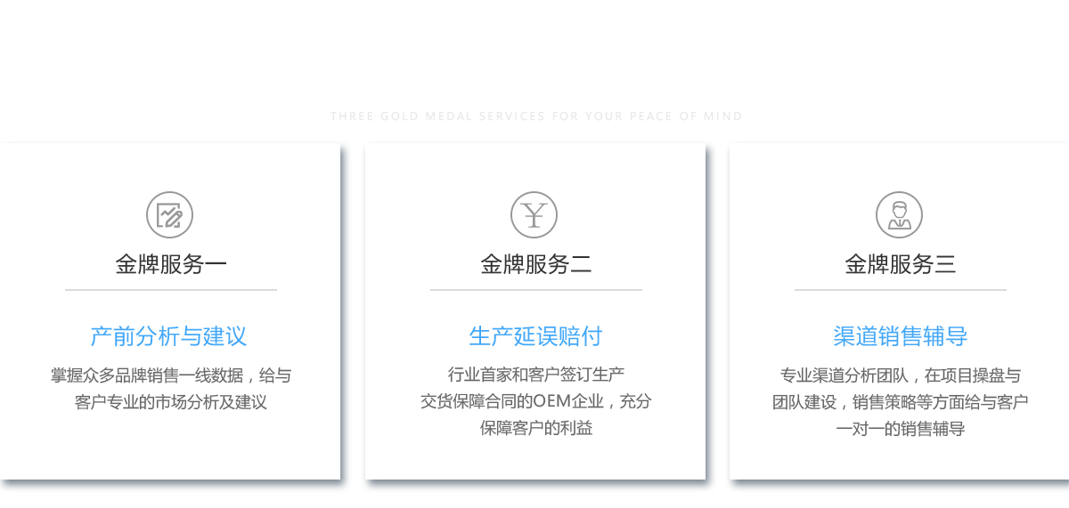 • 免費(fèi)提供三證資質(zhì)備案認(rèn)證,提供從產(chǎn)品試樣到包裝策劃、生產(chǎn)配送一條龍服務(wù)