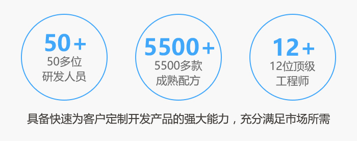 • 擁有上千種成熟配方,緊跟市場熱點(diǎn)潮流,不斷研發(fā)新品,助您搶占市場商機(jī)。
